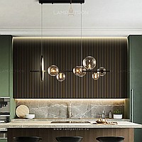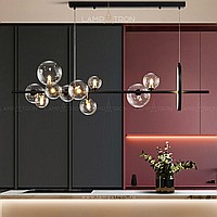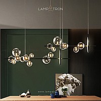 Рядный светильник из серии IONA с шарообразными плафонами различных диаметров и светодиодным кольцом — легкость танцующих мыльных пузырей!