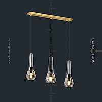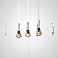 Готовая комбинация подвесных светильников с фигурными коническими плафонами из ограненного хрусталя