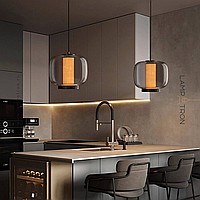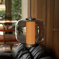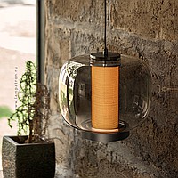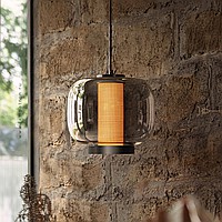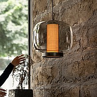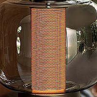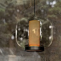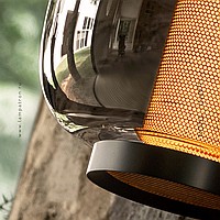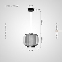 Подвесной светильник с цилиндрическим LED источником света с сетчатым рассеивателем и шарообразным плафоном из дымчатого стекла