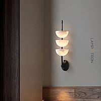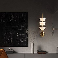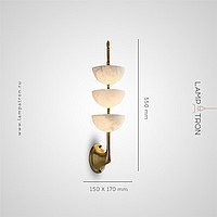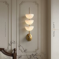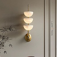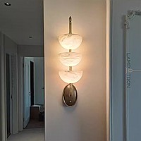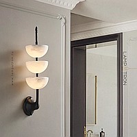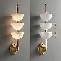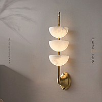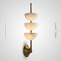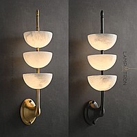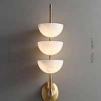 Настенные светильники с тремя рассеивателями из испанского алебастра в форме полусфер на латунной стойке
