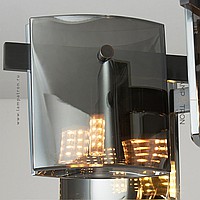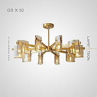 Серия люстр на лучевом каркасе с прямоугольными рассеивателями из дымчатого и янтарного стекла