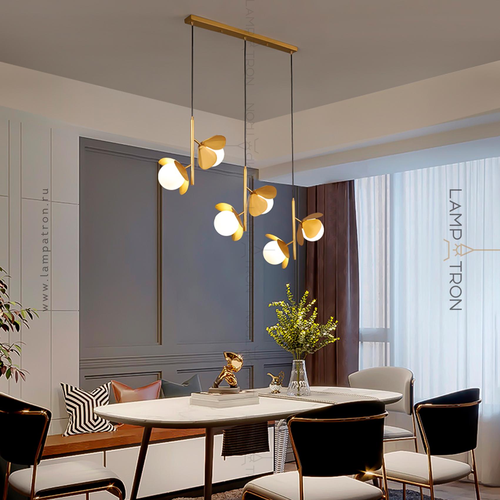 Готовая комбинация подвесных светильников с шарообразными стеклянными плафонами внутри металлического цветка