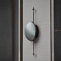 Настенный светильник на вертикальной стойке с текстильным плафоном в форме полусферы