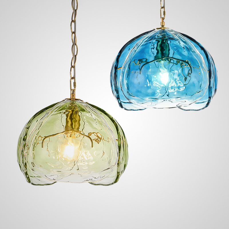 Серия подвесных светильников с разноцветными абажурами из выдувного стекла