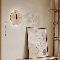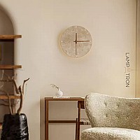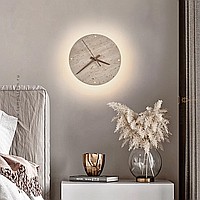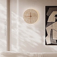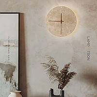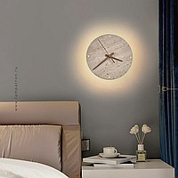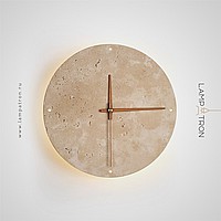 Настенный светильник с дисковым рассеивателем из натурального травертина и часовым механизмом