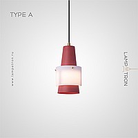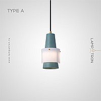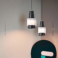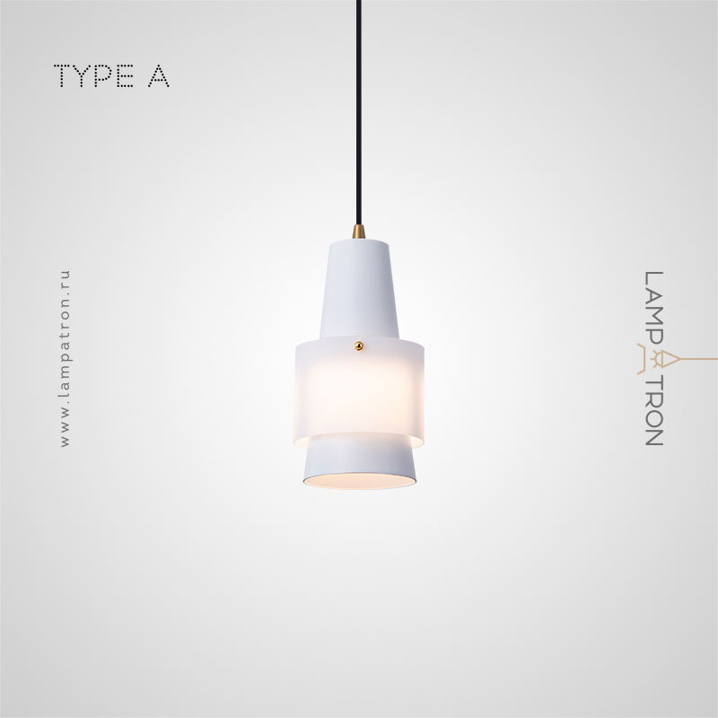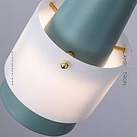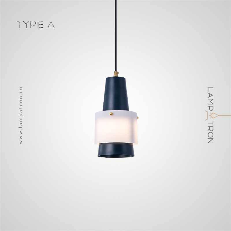 Серия подвесных светильников с геометрическим корпусом из разноцветного металла и белого стекла