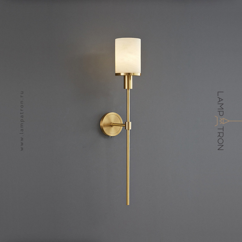 Серия настенных светильников с цилиндрическим плафоном из натурального мрамора на медной стойке