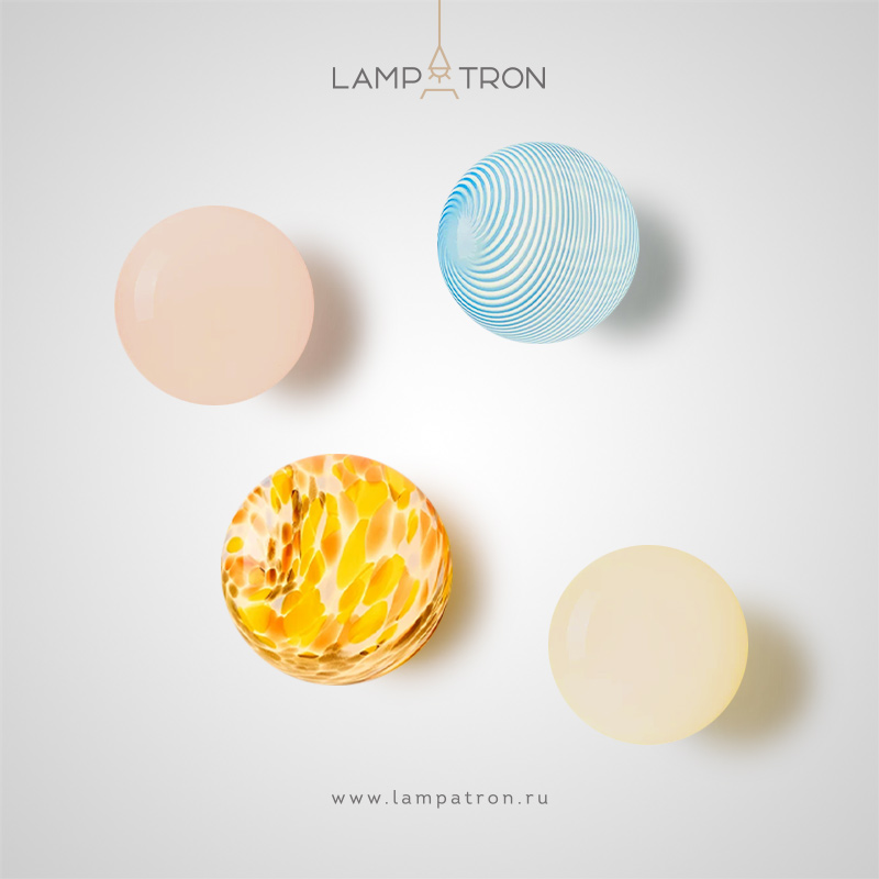 Серия настенных светильников с шарообразными плафонами из цветного стекла