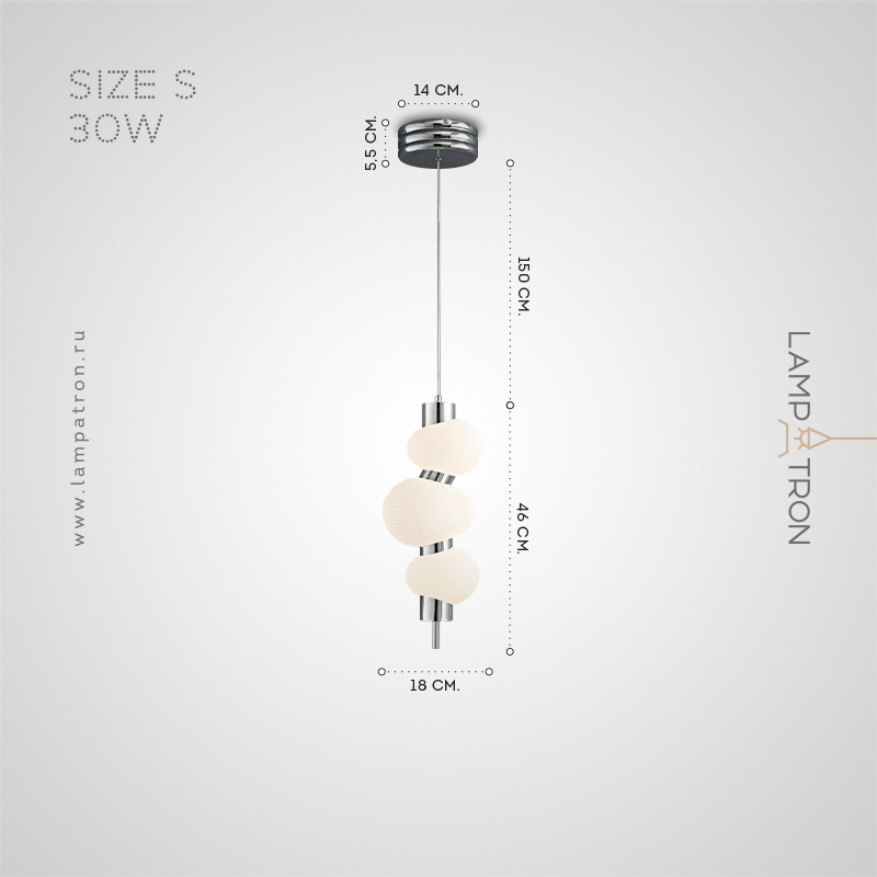 Серия подвесных светодиодных светильников с рифлеными шарообразными плафонами на искривленном цилиндрическом стержне