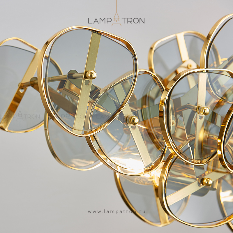 Серия реечных светильников с листовидными стеклянными рассеивателями с латунной окантовкой на ветвистом каркасе