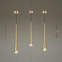 Подвесной светильник в форме золотой капли с хрустальным шаром.