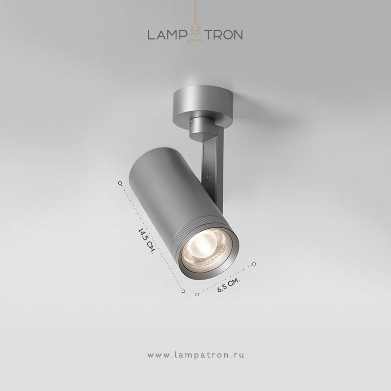 Точечный светильник из никелированного металла с цилиндрическим спотом с регулируемым фокусом света
