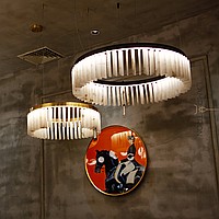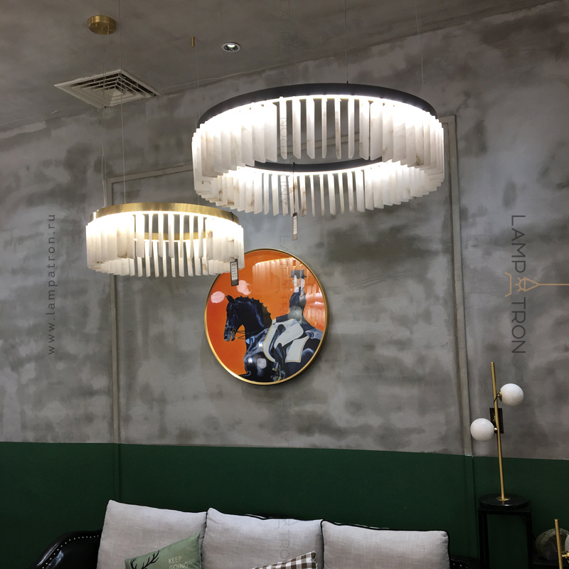 Дизайнерская светодиодная люстра на кольцевом каркасе с прямоугольными подвесками из мрамора