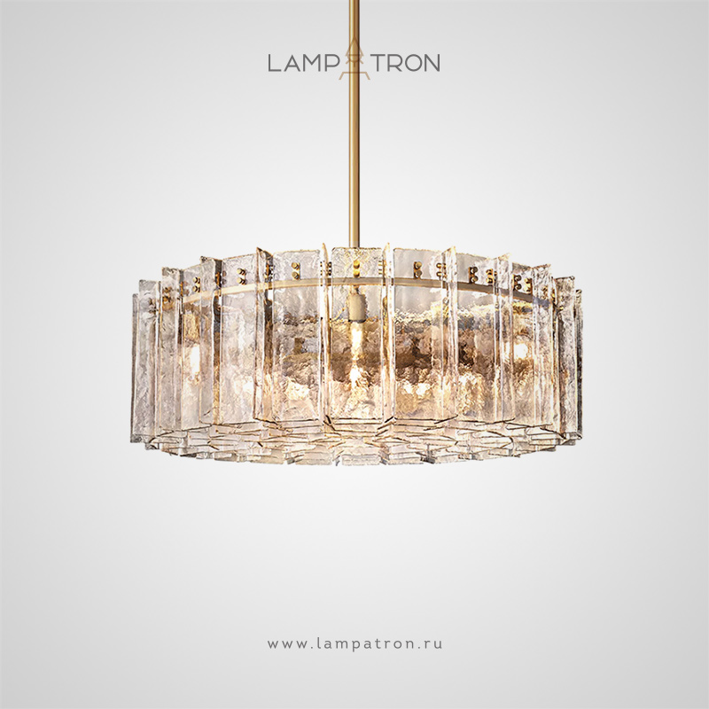 Серия люстр с кольцевым абажуром из рельефных стеклянных пластин прямоугольной формы
