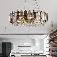 Серия кольцевых люстр с плафоном из стеклянных закругленных пластин дымчатого цвета