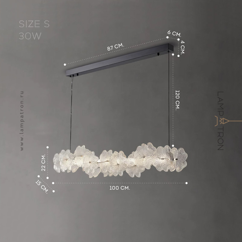 Реечный светодиодный светильник с цилиндрическим плафоном и цветочным декором из прозрачного стекла