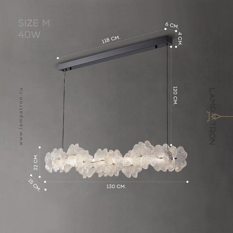 Реечный светодиодный светильник с цилиндрическим плафоном и цветочным декором из прозрачного стекла