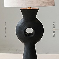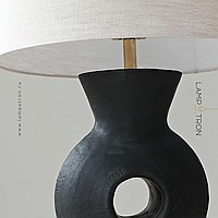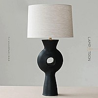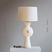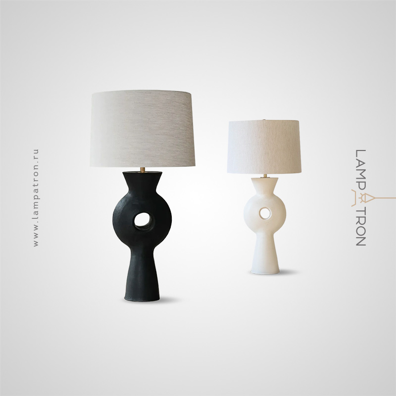 Серия настольных светильников с трапециевидным текстильным абажуром на фигурном керамическом основании