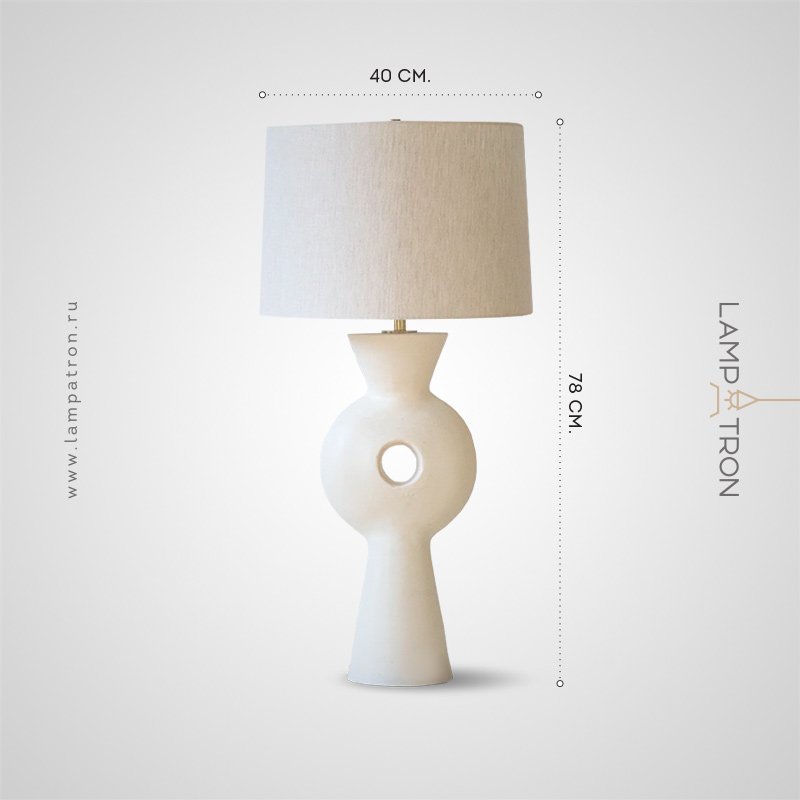 Серия настольных светильников с трапециевидным текстильным абажуром на фигурном керамическом основании