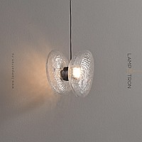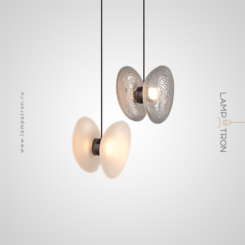 Серия подвесных светильников с каплевидными стеклянными плафонами из прозрачного и молочного стекла с характерной фактурой