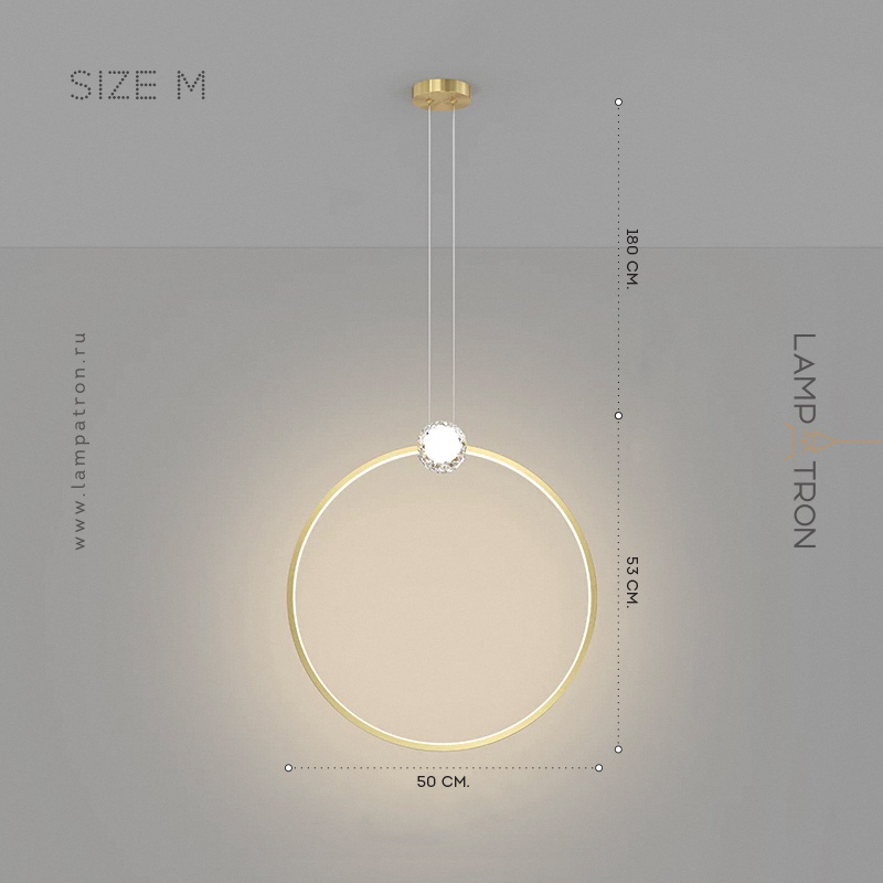 Серия подвесных светильников в виде колец разного диаметра с внутренней LED-подсветкой и хрустальным декоративным элементом