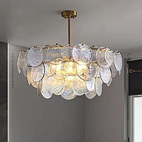Люстры Lorang с круглыми стеклянными подвесками с уникальным перламутровым переливом.