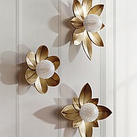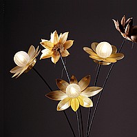 Серия светильников Lotus с абажурами из латуни 3-х различных форм и фактурным стеклянным плафоном. Пользуйтесь возможностью комбинаций этих светильников при использовании группой, чтобы усилить эстетический эффект. А где их размещать на потолке, стене или в обоих местах сразу — зависит от вашей фантазии!