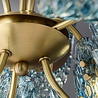 Серия дизайнерских люстр на лучевом каркасе со стеклянными рассеивателями в форме лепестков с панцирной поверхностью