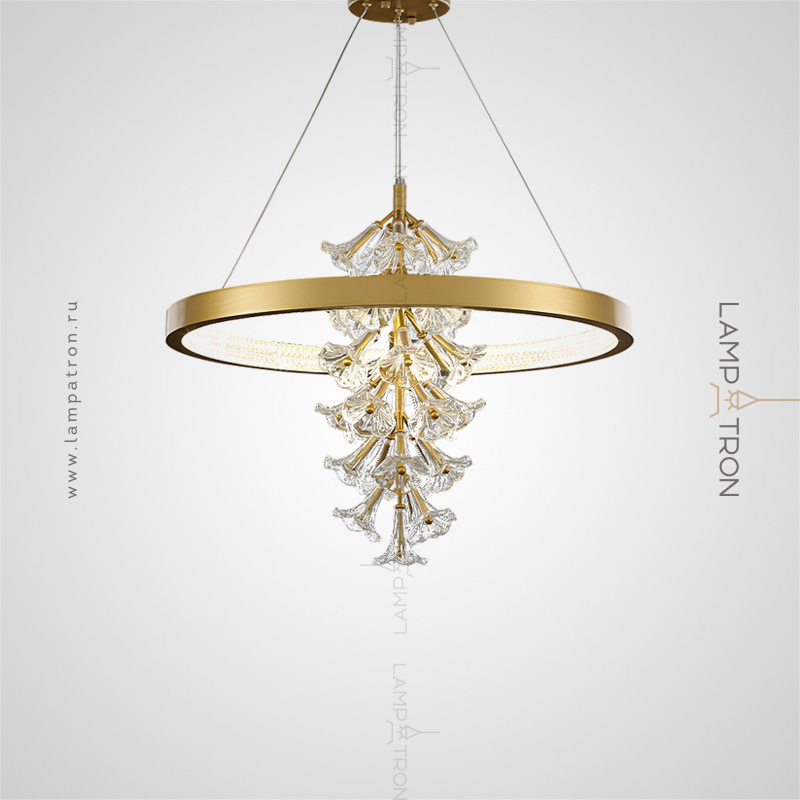 Серия светодиодных люстр на кольцевом каркасе с внутренней LED-подсветкой и центральным декором из прозрачных цветов