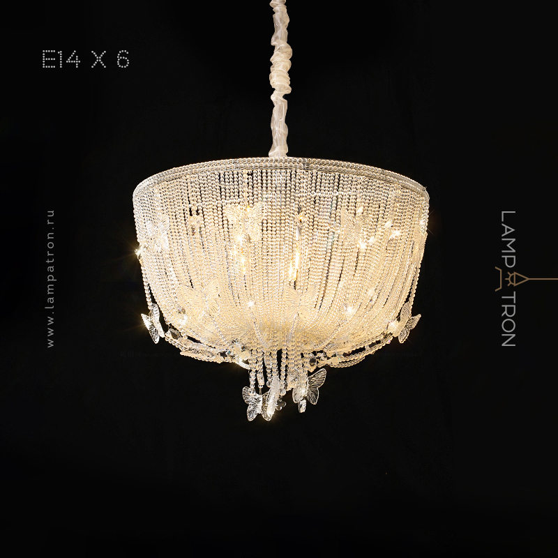 Серия люстр с купольным абажуром из хрустальных подвесок в виде бусин и бабочек