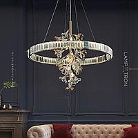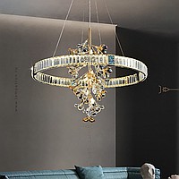Серия светодиодных люстр на кольцевом каркасе с внутренней LED-подсветкой и центральным декором из хрустальных цветов