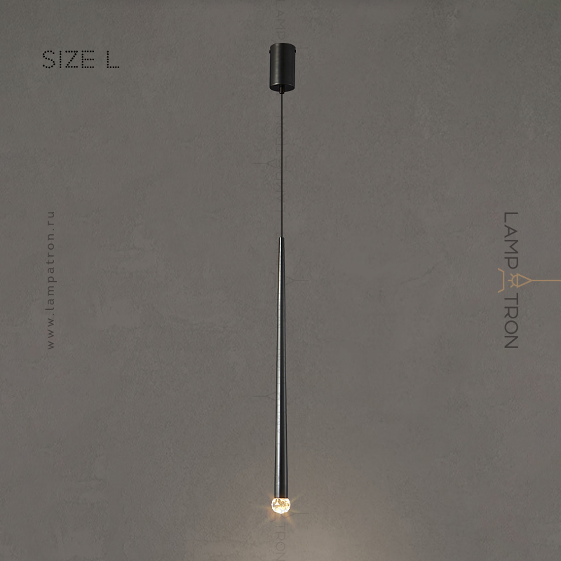 Серия подвесных светодиодных светильников с плафоном удлиненной конической формы и декором в виде хрустального камня