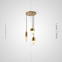 Готовая комбинация подвесных светодиодных светильников с тремя округлыми плафонами из натурального белого мрамора