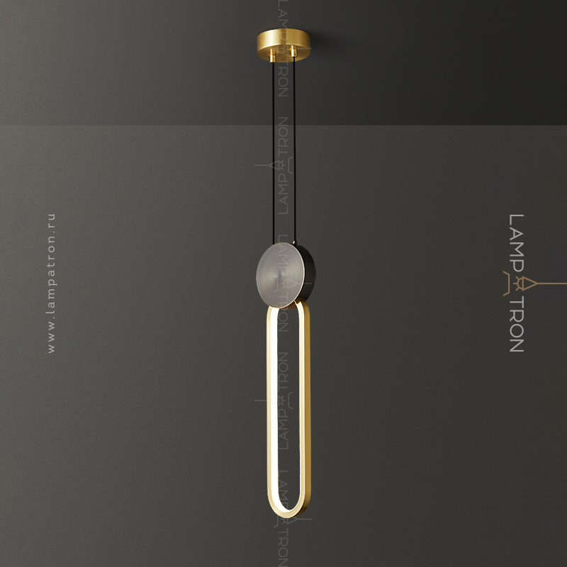 Серия подвесных светильников с латунными дисками на закольцованном корпусе с внутренней LED-подсветкой
