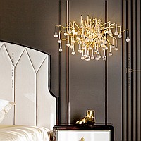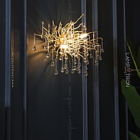 Серия настенных светильников с ветвистым каркасом и стеклянными каплевидными подвесками