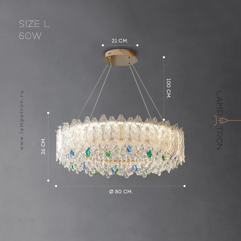 Серия люстр с рассеивателями из стеклянных листьев и каплевидными подвесками из цветного хрусталя