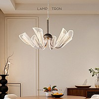 Серия светодиодных люстр с конусовидными плафонами из прозрачного стекла с линейным паттерном на изогнутых рожках