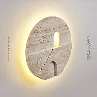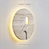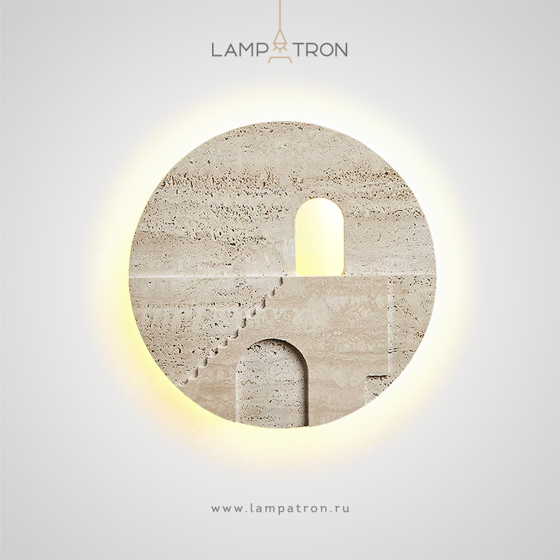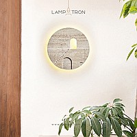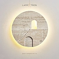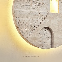Настенный светодиодный светильник в виде диска из травертина с сюжетным рельефом