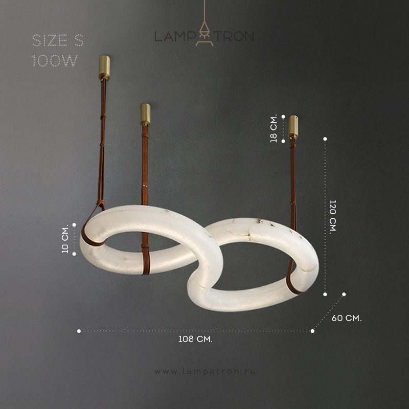 Светодиодная подвесная люстра с мраморным плафоном в форме спирали на кожаных ремешках