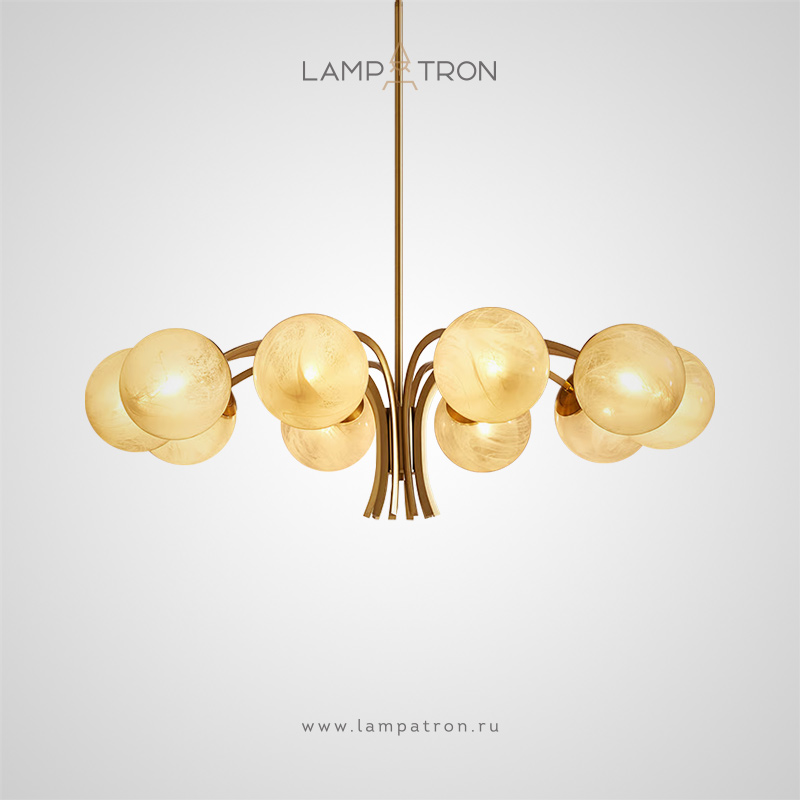 Люстра с шарообразными плафонами из стекла ручной работы на изогнутых рожках