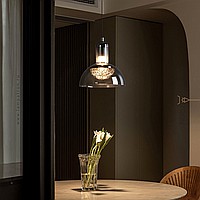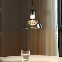 Подвесные светодиодные светильники со стеклянным купольным плафоном и сетчатым рассеивателем в основании
