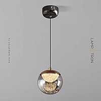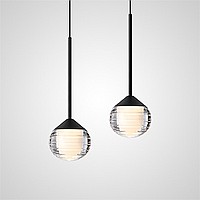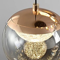 Серия подвесных светильников с LED-источниками света в полусферических рассеивателях с эффектом льда внутри шарообразных плафонов из тонированного стекла