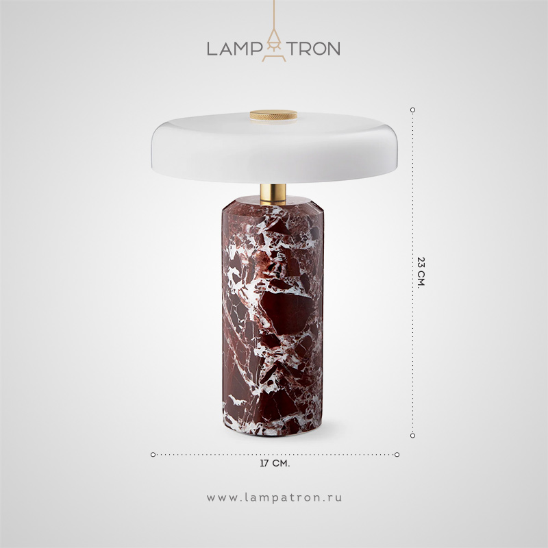 Серия портативных настольных ламп со стеклянным плафоном на цилиндрическом основании из натурального мрамора