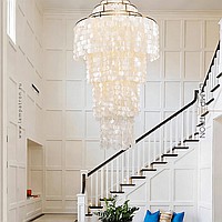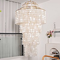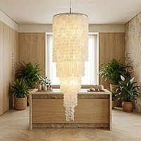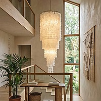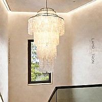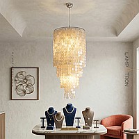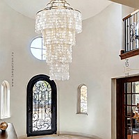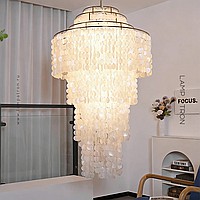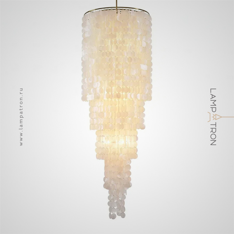 Серия каскадных люстр на кольцевом каркасе с перламутровыми подвесками из ракушек