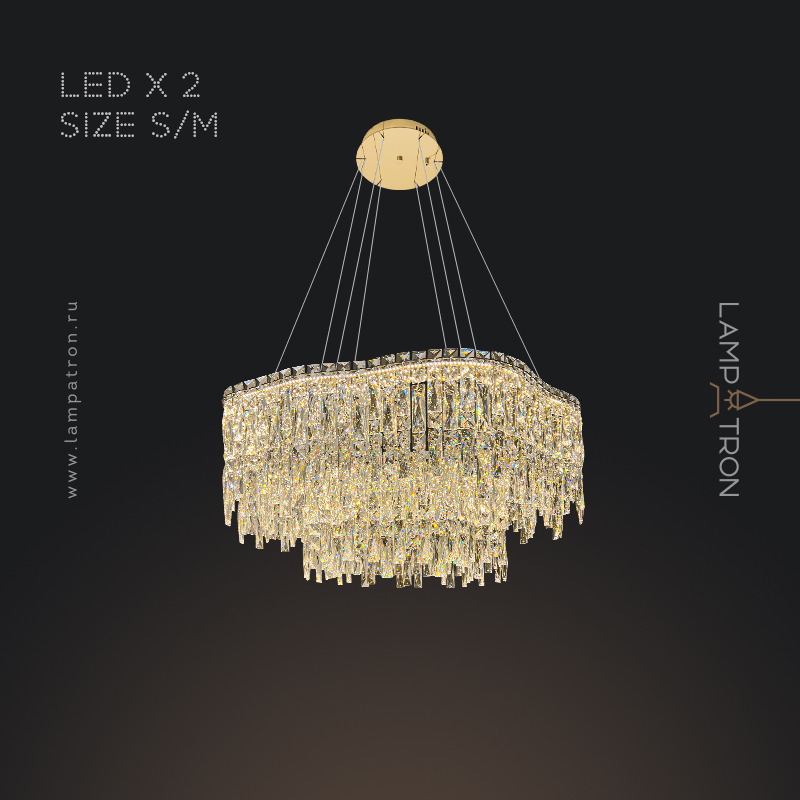 Серия светодиодных люстр с прямоугольными подвесками из хрусталя на закольцованном корпусе неправильной формы