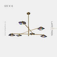 Серия люстр на лучевом каркасе с изогнутыми рассеивателями из перламутрового стекла