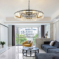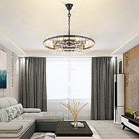 Люстра в стиле Модерн с подвесками из стекла выпуклой формы на кольцевом или удлиненном каркасе