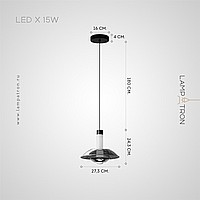 Подвесной светильник с цилиндрическим LED источником света и купольным плафоном из дымчатого стекла