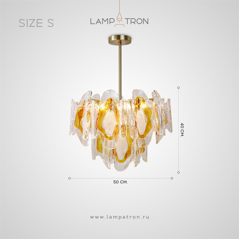 Серия люстр с двухъярусным плафоном из подвесок в виде изогнутых пластин из фактурного прозрачного и тонированного стекла