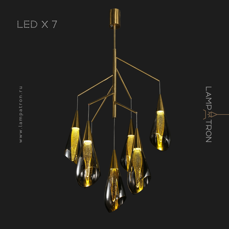 Серия светодиодных люстр с каплевидным рассеивателями из стекла ручной работы с эффектом воздушных пузырьков